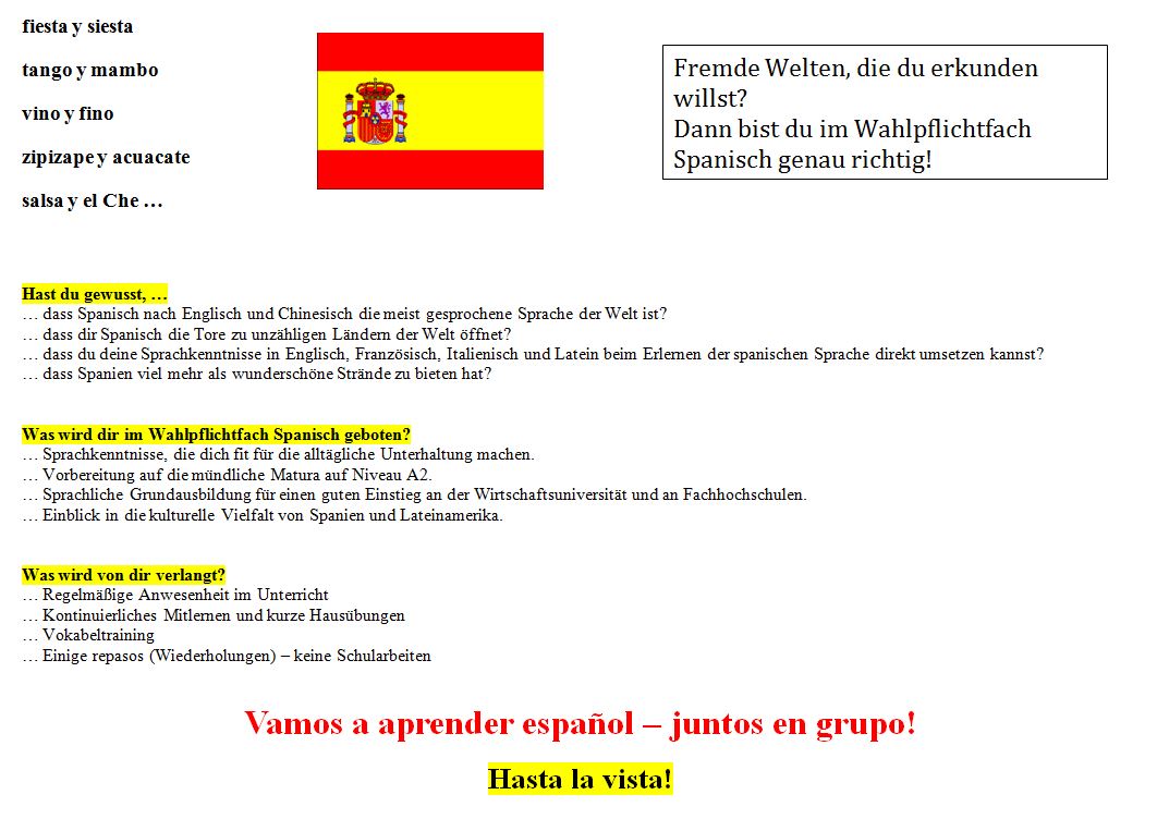 Wahlpflichtfach Spanisch – 6./ 7./ 8.Klasse je 2 Wochenstunden