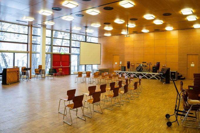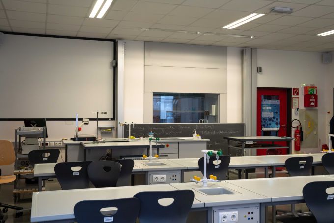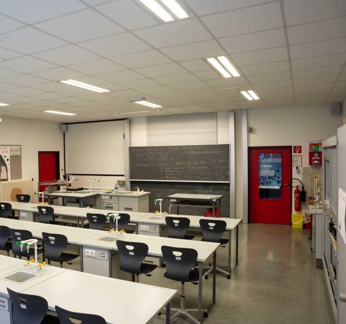 2 Zeichensäle, 2 Werksäle 2 Musiksäle im 2.Stock, einen Physiksaal, einen Chemiesaal, einen Biologiesaal, 3 Informatiksäle, ein EDV-Sprachenzentrum und eine Zentralbibliothek |